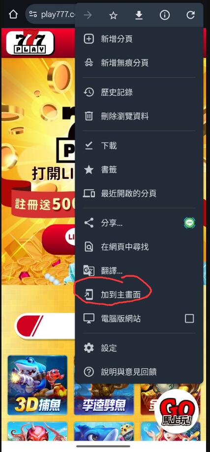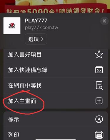 D. 回手機畫面可以找到PLAY777登入就獲得3,000金